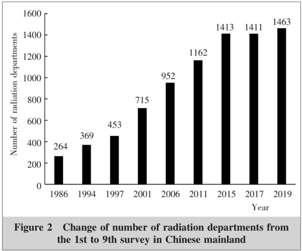 9次放疗行业调研中开展放疗单位数目趋势图见图2(Figure 2)。。。