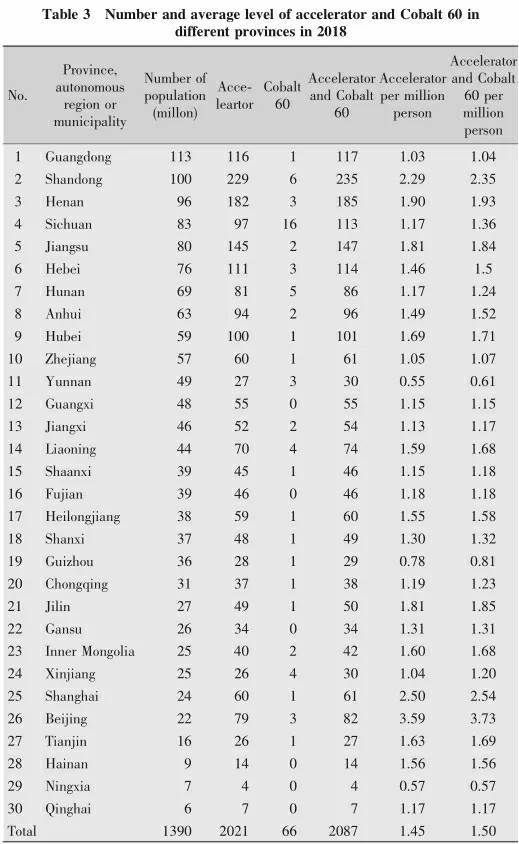 各省、自治区、直辖市的直线加速器及钴60装备数以及人均情形详见表3(Table 3)。。。